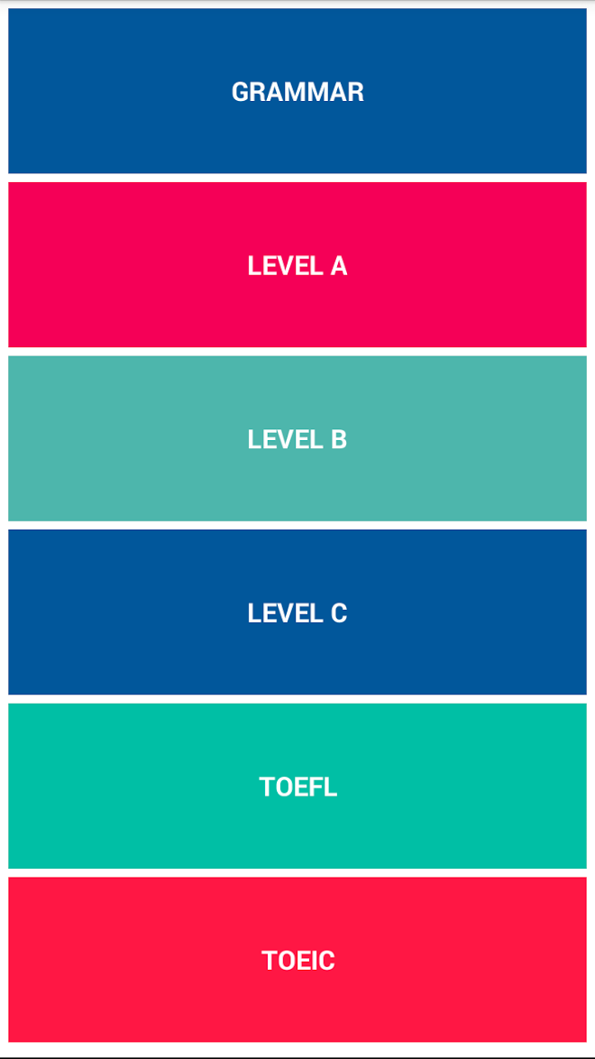 “English Proficiency Test” es una aplicación con más de 10,000 ejercicios de selección múltiple, para todos los niveles de aprendizaje en inglés. + Nivel A: con más de 1.500 ejercicios de selección múltiple. + Nivel B: con más de 1.500 ejercicios de selección múltiple. + Nivel C: con más de 1.500 ejercicios de selección múltiple. + TOEFL: con más de 1.000 ejercicios de selección múltiple. + TOEIC: con más de 1.000 ejercicios de selección múltiple. + Más de 7.000 pruebas de verbos, sustantivos, oraciones o estructuras gramaticales populares en inglés.